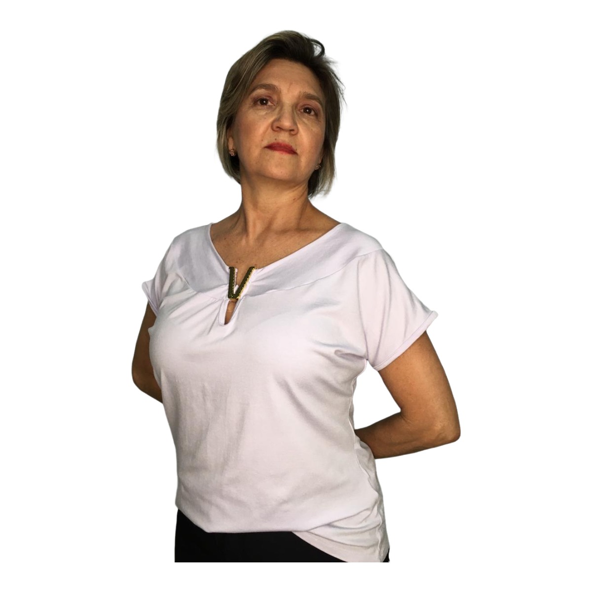 1 Blusa Feminina Nayre Modas Básica com Detalhe na Manga