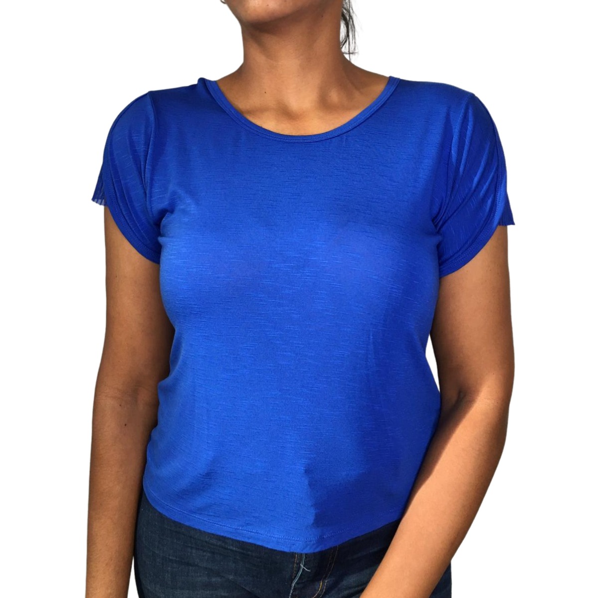 1 Blusa Nayre Modas Feminina com Telinha na Manga Básica Casual Confortável