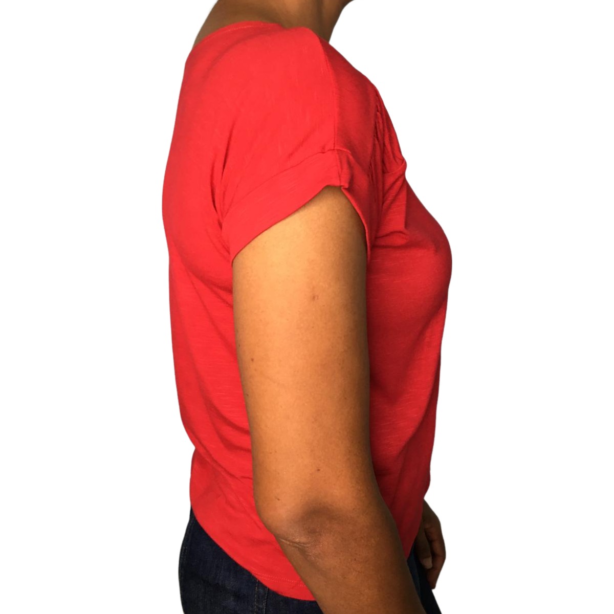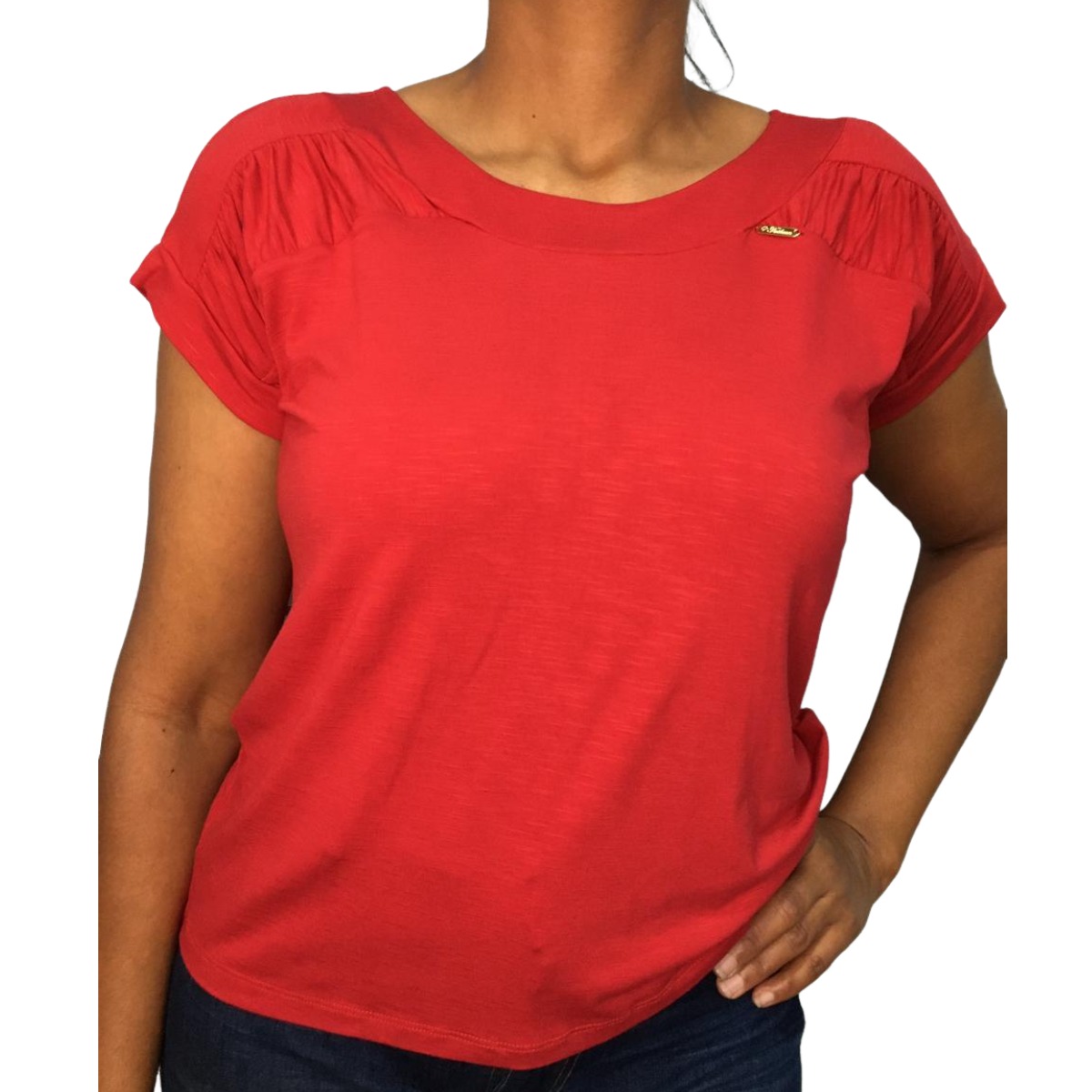 O destaque fica por conta do detalhe franzido nas mangas, que adiciona um toque delicado e feminino à peça, sem abrir mão da praticidade do dia a dia.