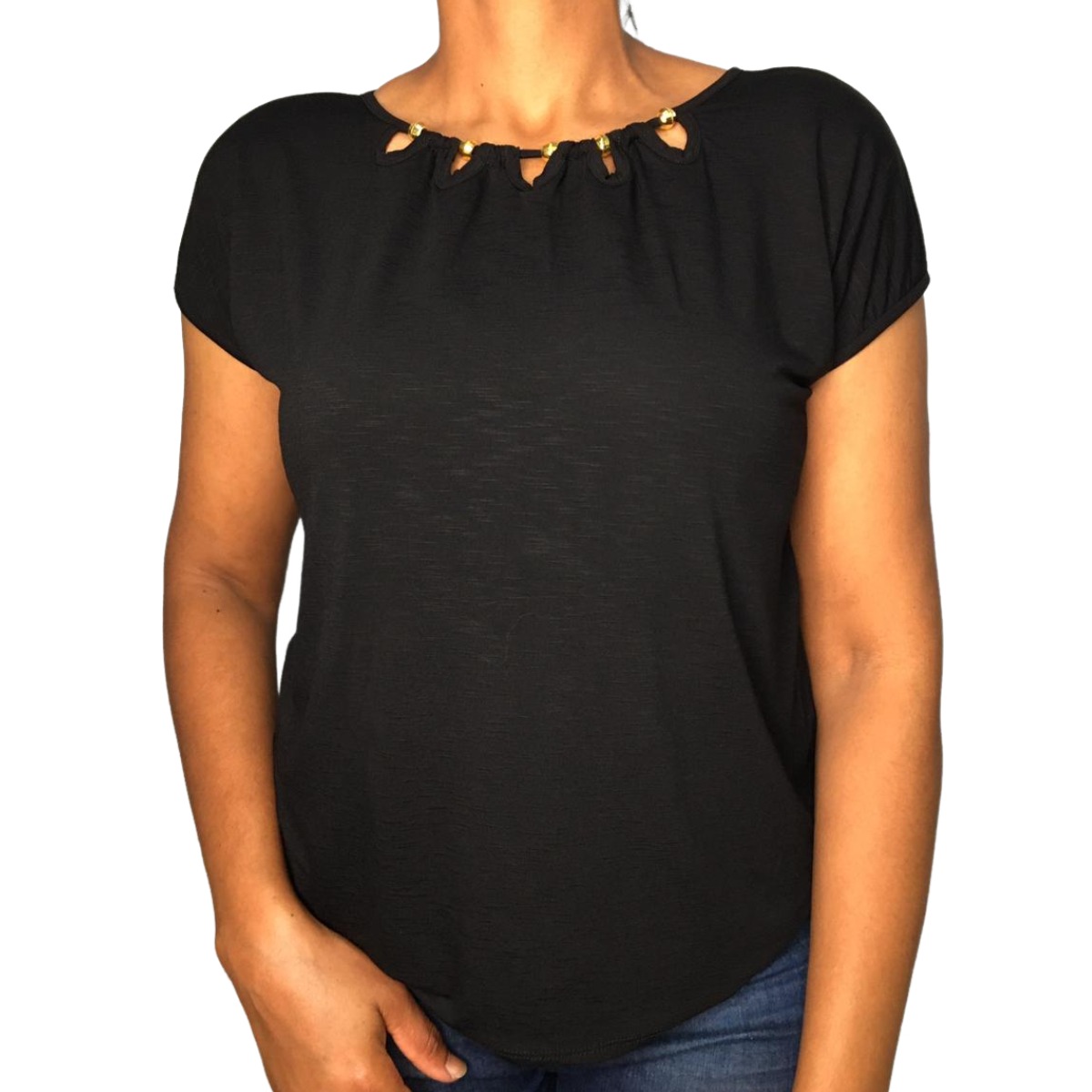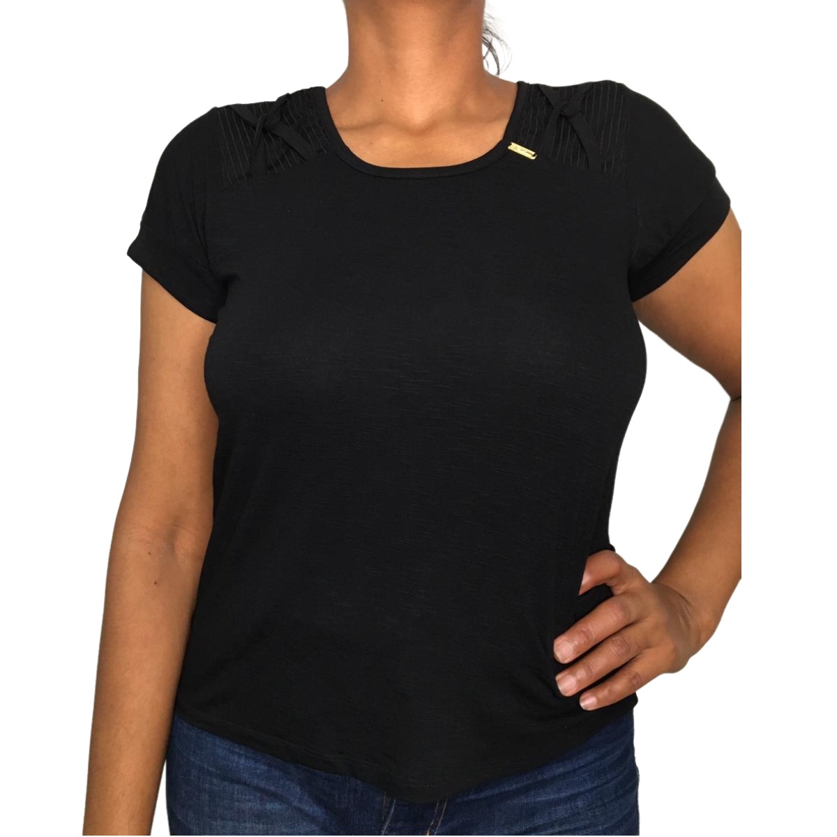 1 Blusa Básica Nayre Modas Feminina com Tule na Manga Casual e Elegante