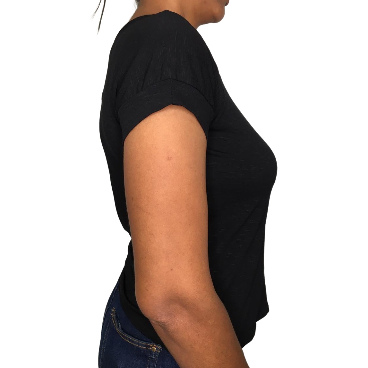 Blusa básica feminina confeccionada em 96% viscose e 4% elastano, garantindo maciez, conforto e ótimo caimento.