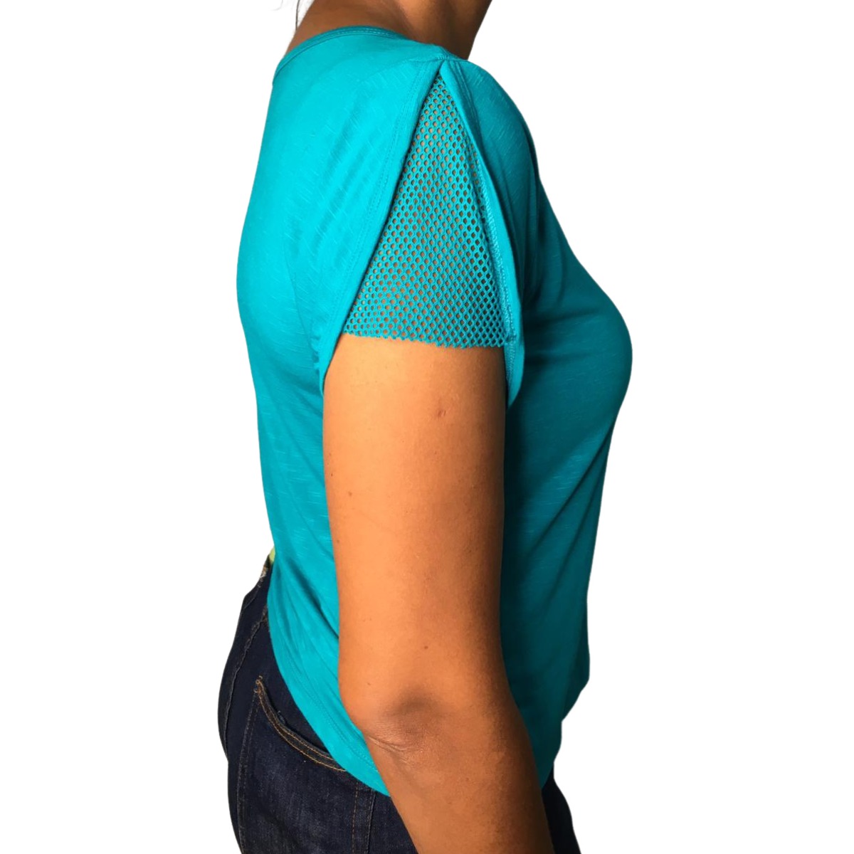 Blusa Básica Nayre Modas Feminina com Tule na Manga Casual e Elegante