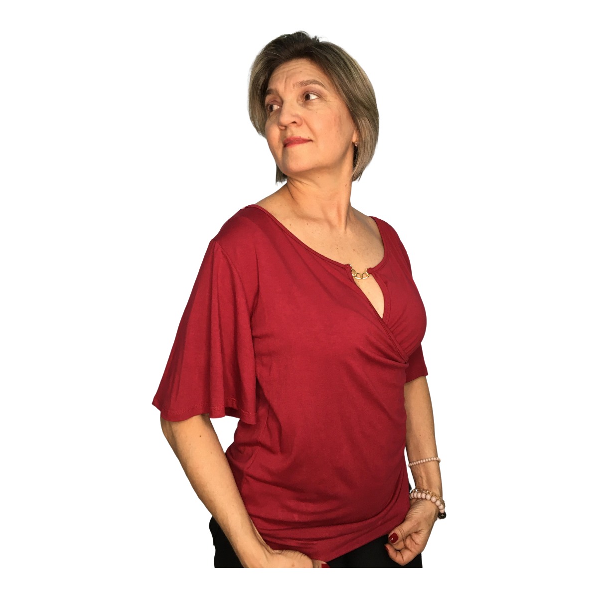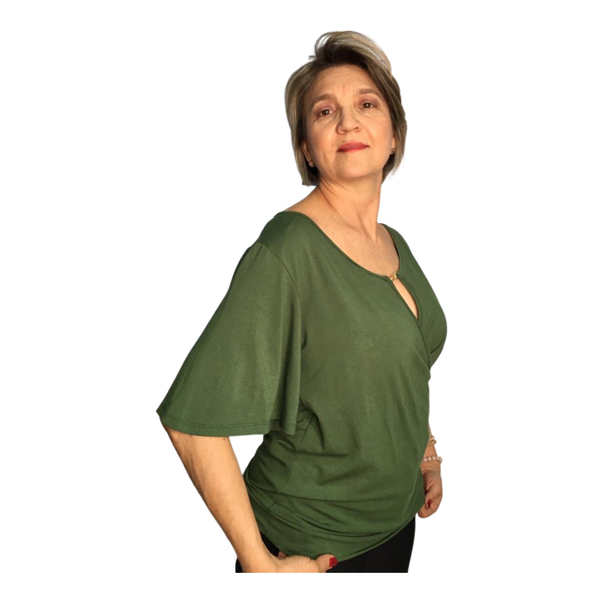 1 Blusa Feminina Ana Julia Manga Borboleta com Detalhe em Argola Dourada