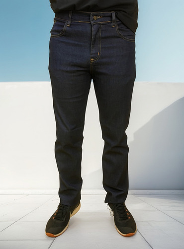 Calça RETA JEANS, modelagem confortável e mais solta, que permite a mobilidade aos movimentos.