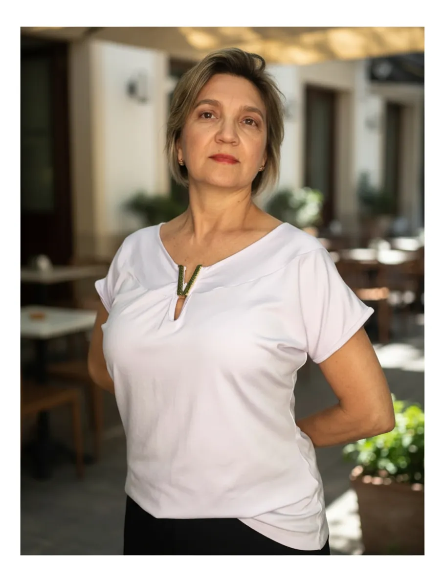 Ombro: 35 cm | Manga: 16 cm | Cava: 38 cm