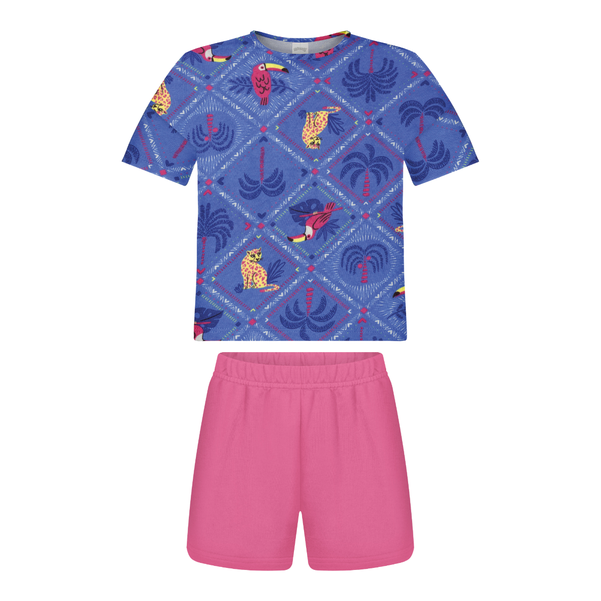 1 (Par) Conjunto Infantil Alakazoo Menina Selva Blusa Short.