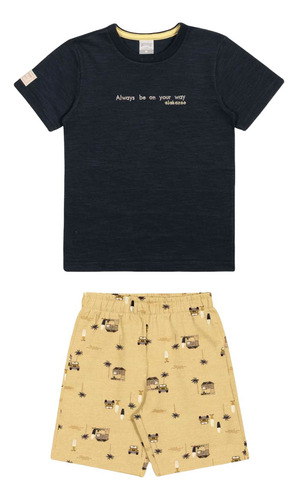 Com malha leve e ultra macia, a camiseta deste conjunto é a aposta certa para as aventuras! A bermuda de moletom estampado complementa o look, trazendo conforto e estilo para o dia a dia do seu pequeno.