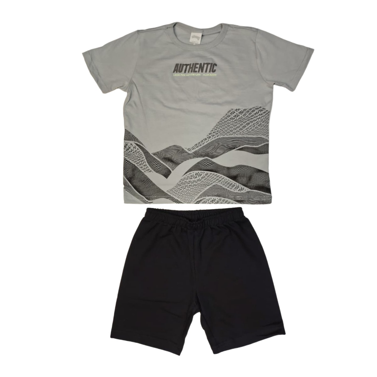 1 Conjunto Infantil Menino Alakazoo Camiseta Estampada e Bermuda de Algodão
