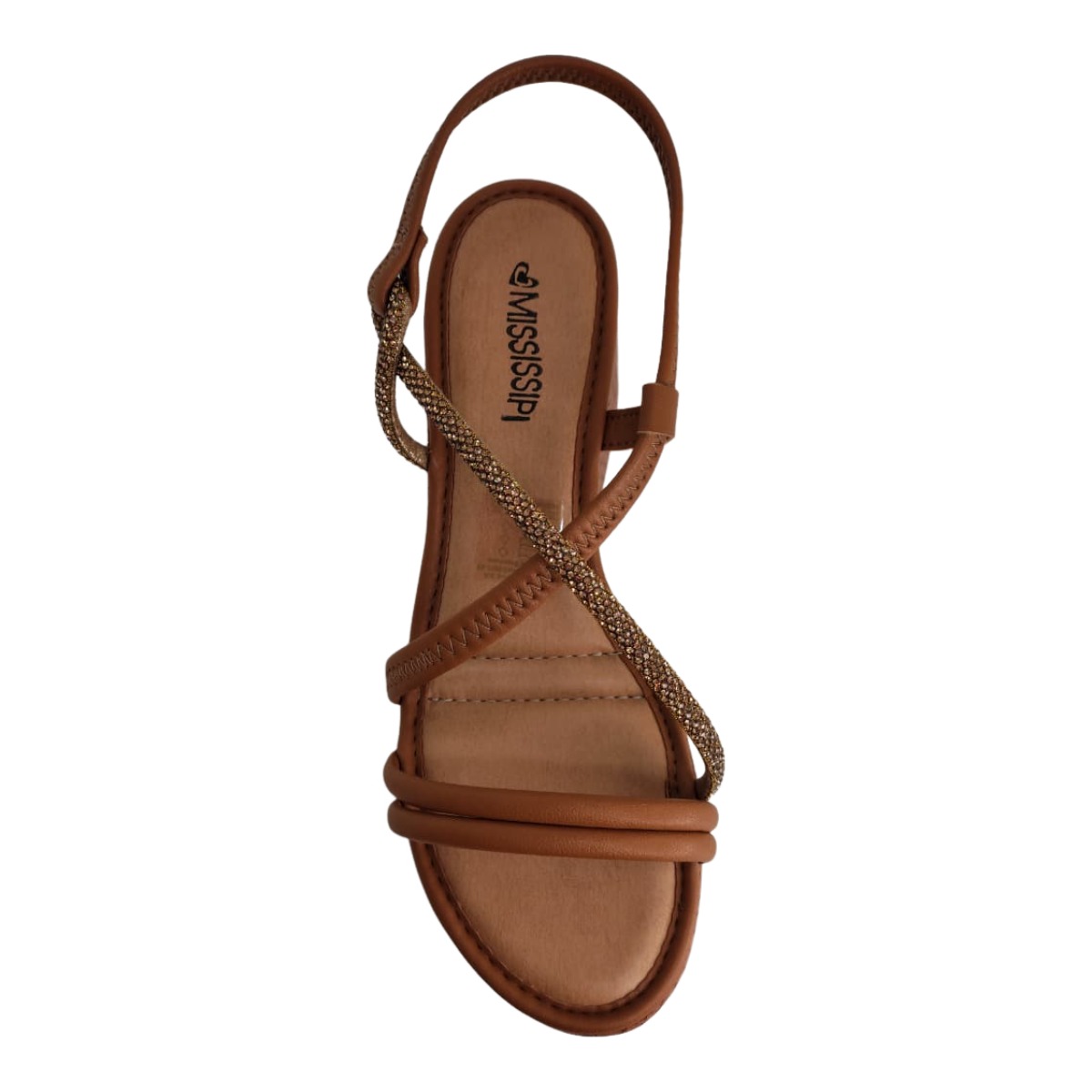 Sandália Mississipi Anabela Bege Feminina com Strass Confortável
