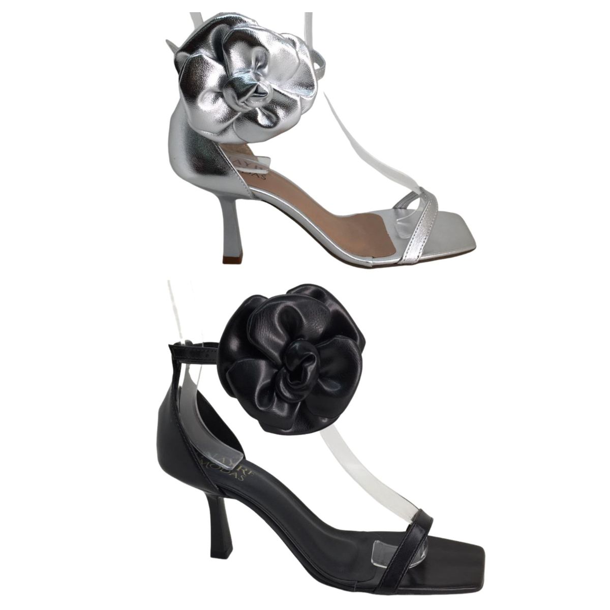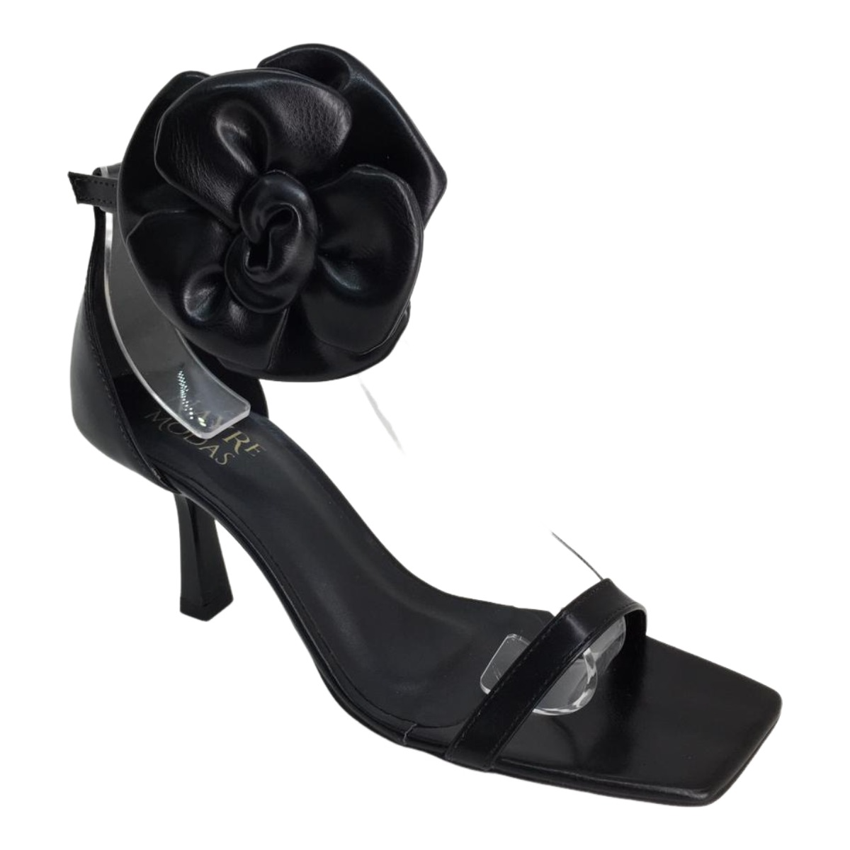 Sandália Nayre Modas Salto Alto Fino com Detalhe Flor Feminina REF 711.5905