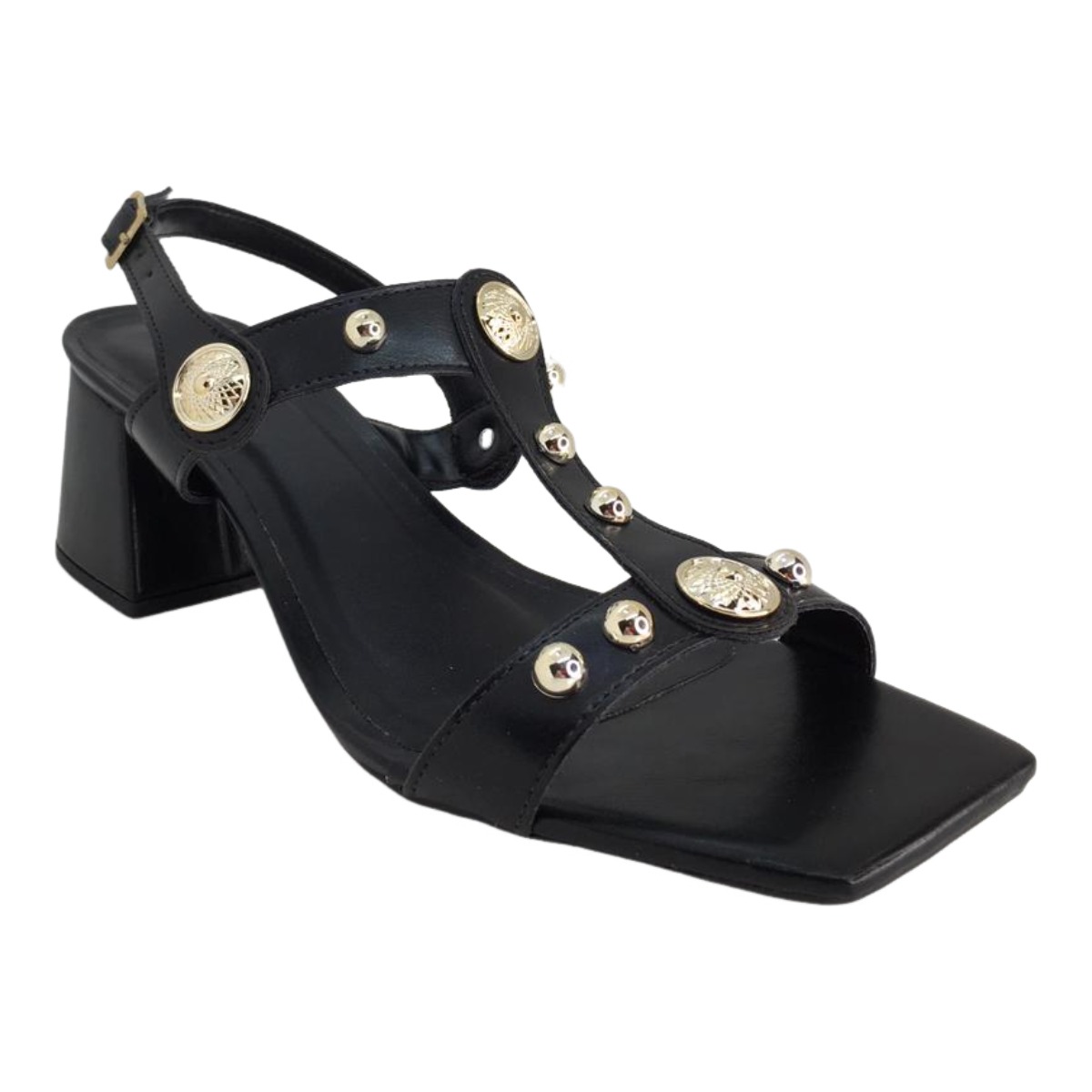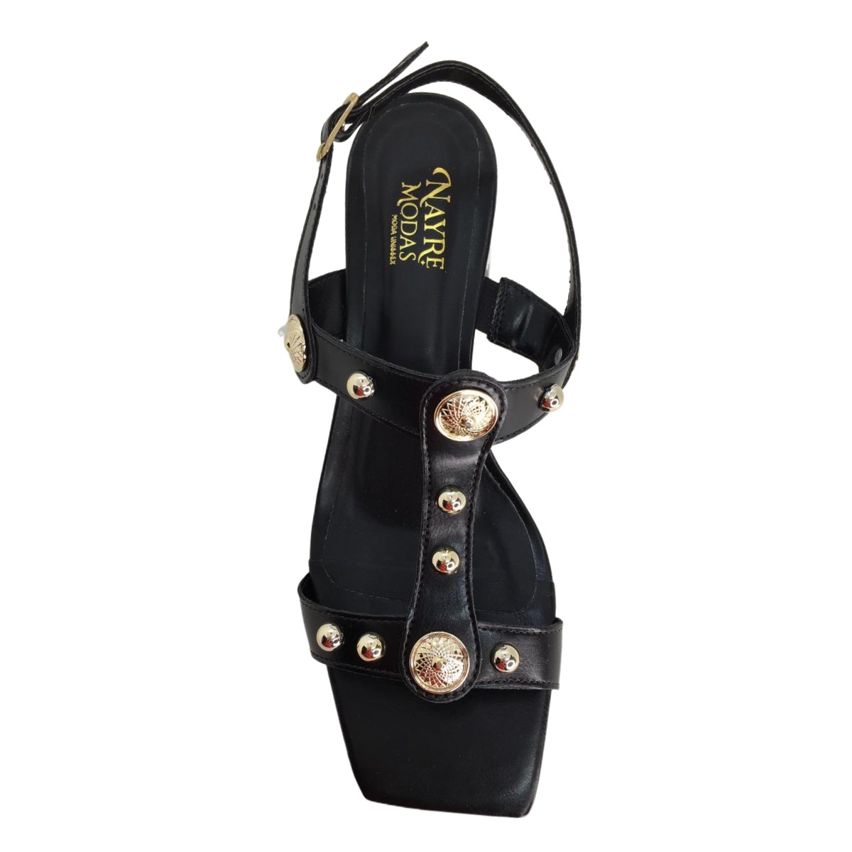 Sandalia Salto Bloco Com Detalhe Dourado Nayre Modas Ref 846