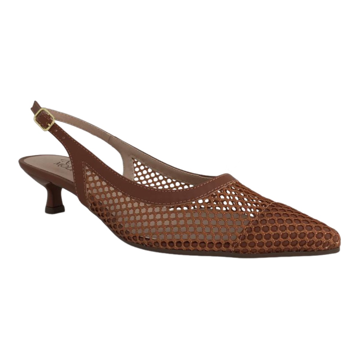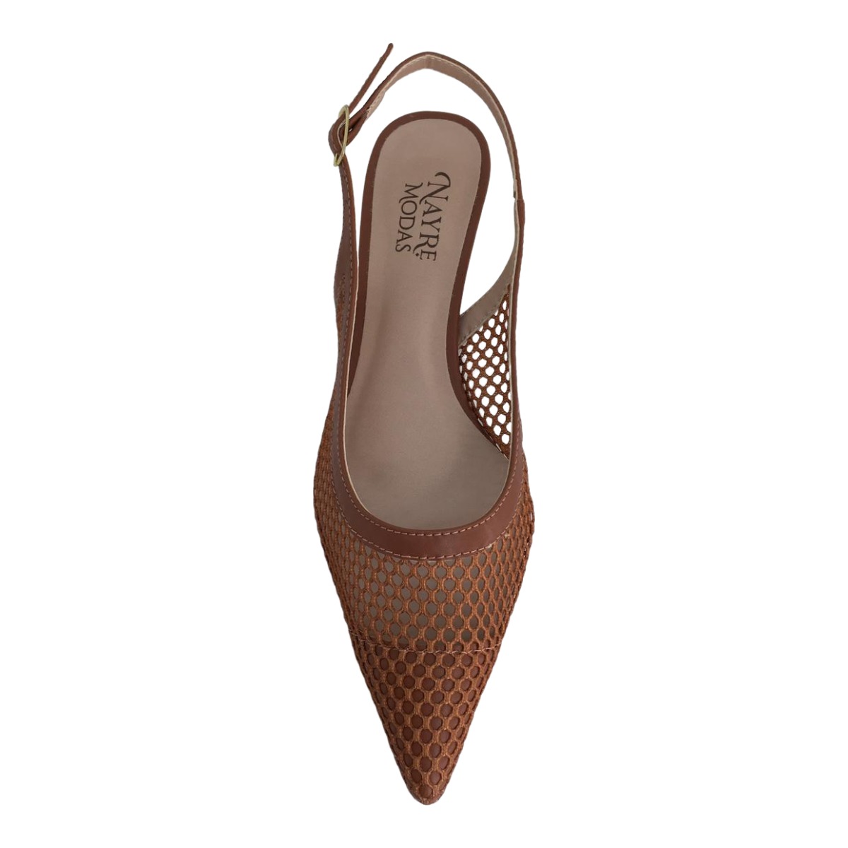 Slingback Feminino Nayre Modas Bico Fino em Tela Salto Baixo 3 cm Elegante
