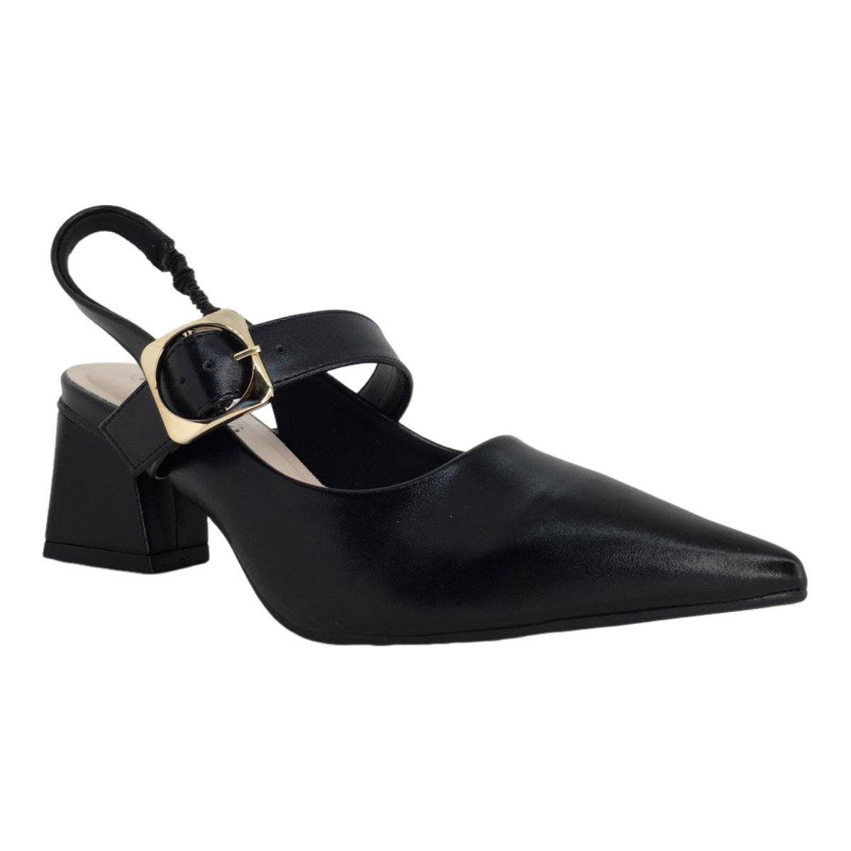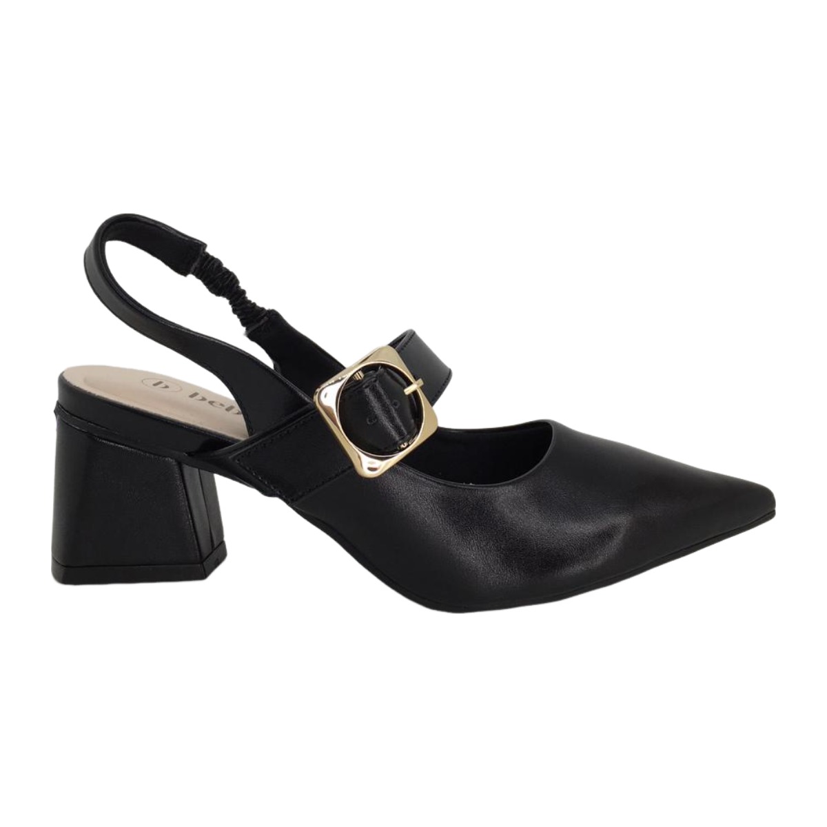 1 Par Scarpin Slingback Feminino Bebecê Salto Grosso com Fivela Moderna.