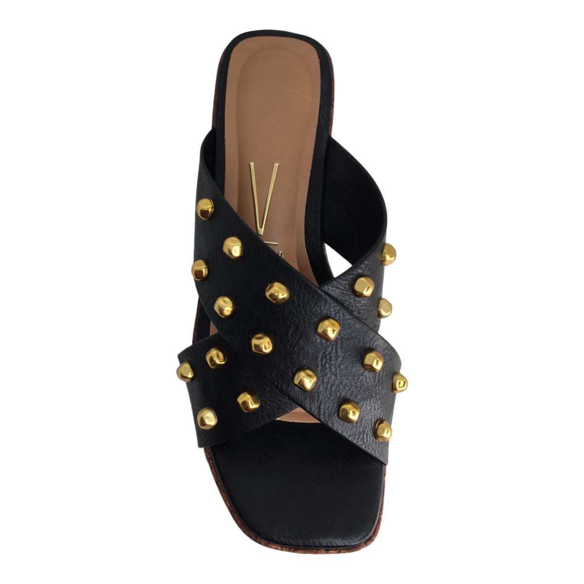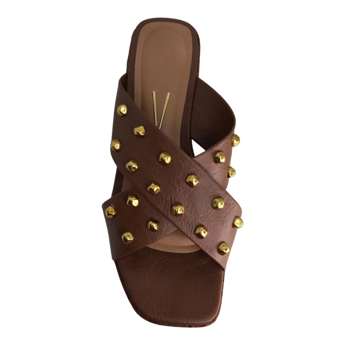 O modelo conta com tiras largas em formato de X sobre o peito do pé, proporcionando ajuste firme e elegante, valorizando o look e garantindo segurança durante o uso.