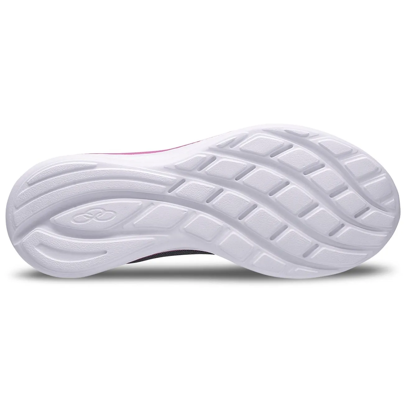 O calce é facilitado pelo puxador traseiro em fita, enquanto o fechamento em cadarço poliéster texturizado e a lingueta em jacquard tricolor garantem ajuste perfeito. A palmilha plana em EVA com tecido poliéster proporciona suporte extra e toque suave a cada passo.