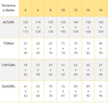Tamanhos: 12/14/16